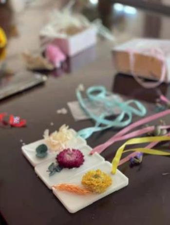 本次活動(dòng)邀請到了專(zhuān)業(yè)的花藝老師,讓廣大女職工用自己的巧手和智慧,感受插花藝術(shù)的魅力?;ㄋ嚴蠋熓紫葹榇蠹以敿毥榻B了花材知識、插花藝術(shù)、購買(mǎi)鮮花常識及注意事項等,并示范了花籃的插花技巧,在花藝老師的指導下大家紛紛親自動(dòng)手實(shí)踐,浪漫粉色的玫瑰,高雅神秘的洋桔梗,零星點(diǎn)點(diǎn)的滿(mǎn)天星,還有各色花卉放滿(mǎn)了一桌,大膽發(fā)揮自己的想象,用自己靈巧的雙手,將向日葵、黃金海岸等花材修剪、整枝,再根據不同的色彩、形狀有層次地搭配在一起一盆盆融合了女職工們豐富想象力的插花作品展現在了大家的面前,置身于鮮花叢中的女職工們興致盎然,燦爛的笑容與鮮艷的花朵交相輝映,美麗不凡。接下來(lái)是教大家制作香薰掛牌,將融好的蠟倒入各種形狀的模具中,在蠟干透前用干花在表面點(diǎn)綴出一個(gè)個(gè)充滿(mǎn)意境的圖案。